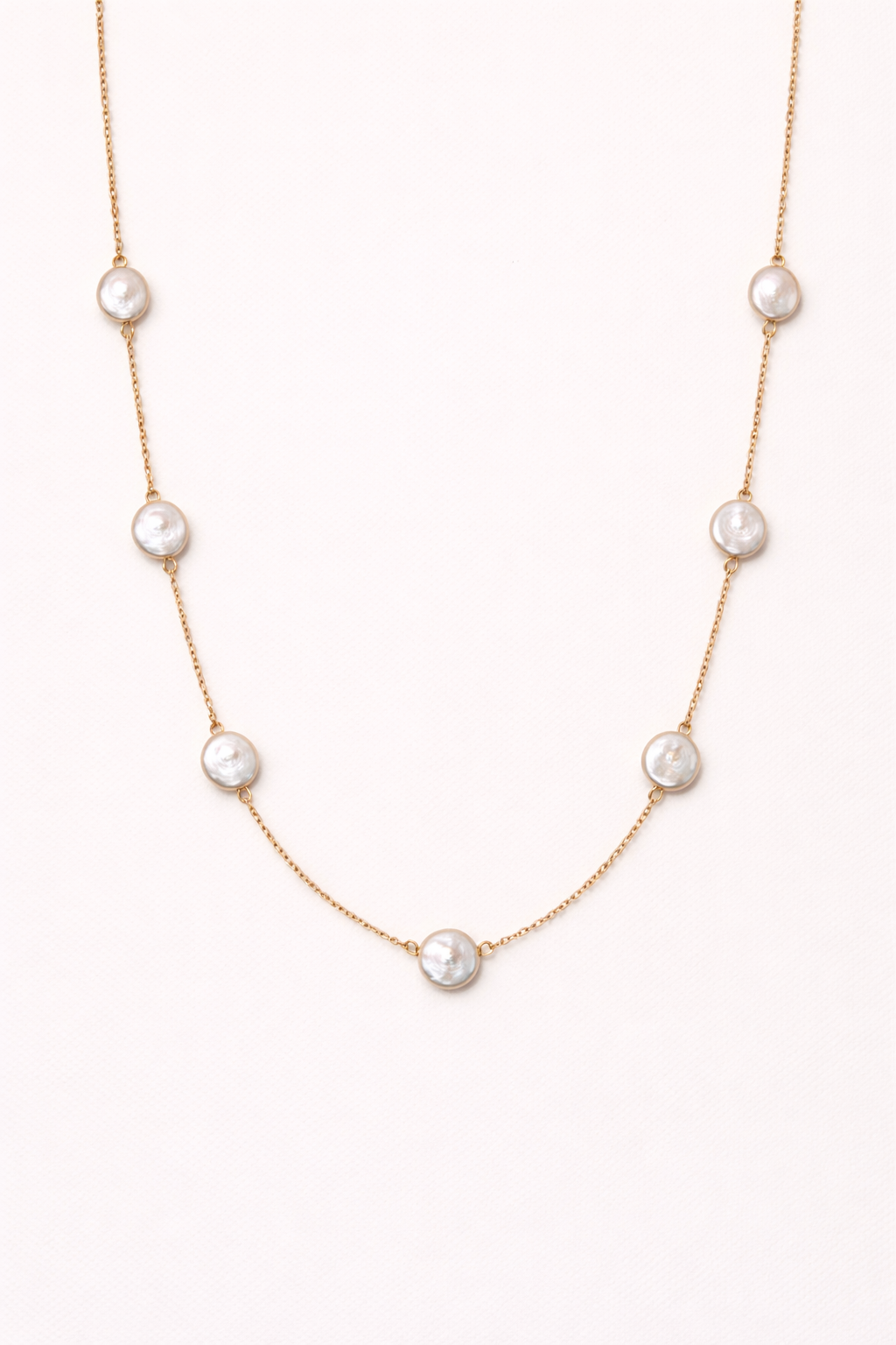 Elegant and softly luminous, the Perle Aura Necklace features delicately set freshwater pearls framed in a fine gold-tone chain. Each pearl is evenly spaced to create a balanced, graceful flow that rests beautifully along the neckline.
